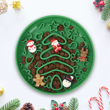 Cuenco de comida para mascotas de silicona seguro para Navidad de nuevo diseño personalizado sin derrames, comedero lento, alfombrilla para lamer con ventosas para perros